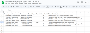 Once a quote is provided, the agent collects essential lead information (name, contact, service interest) and sends it directly to your sales team — enabling them to follow up and schedule appointments.
