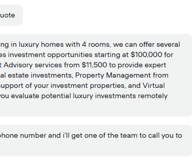 The AI agent greets them, understands what type of property they’re looking for, and offers options.