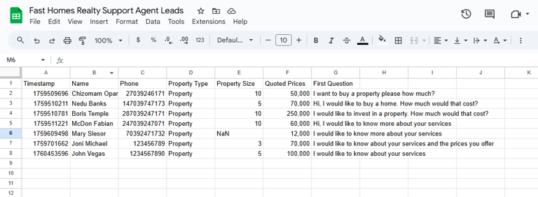 Imagine Fast Homes Realty, a real estate agency using this AI agent.