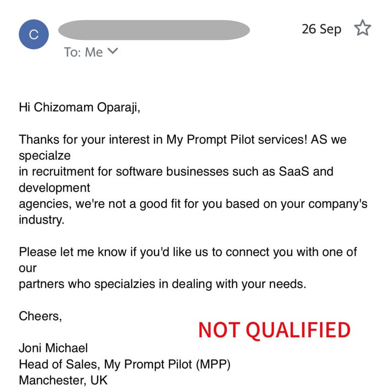 Unqualified Leads: The agent automatically replies, offering to connect them with one of your trusted partners instead.